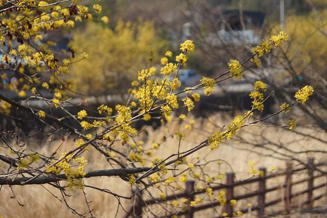 맑은 봄 볕 아래 너무 이쁜 매화와 산수유가 가득!