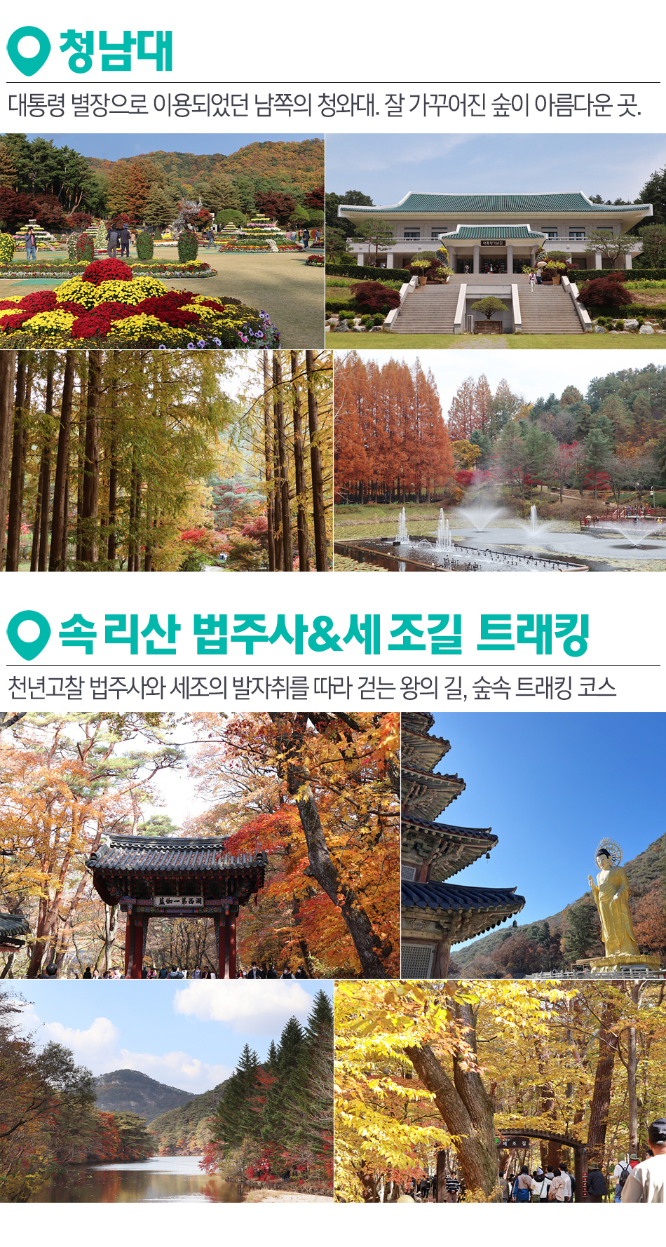 가을단풍♬ 일곱빛깔 힐링 단풍여행♬ 남쪽의 청와대, 청남대/속리산 명품숲길 세조길 트래킹