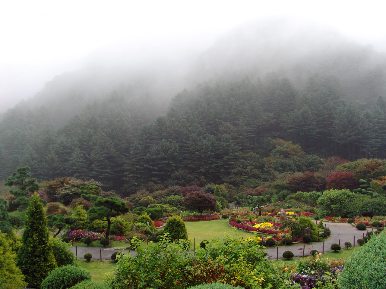 여행지 아침 고요수목...