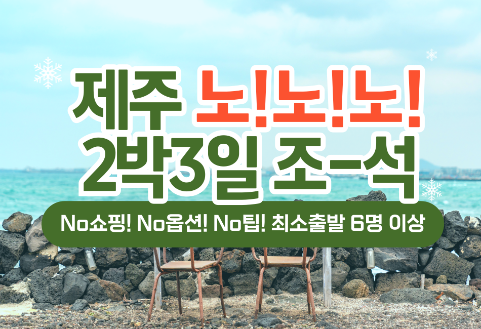 [제주] 노!노!노!(노쇼핑+노옵션+노팁/최소출발인원 6명이상) 조-석 2박3일 (3/1~8/23)